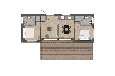 Deze luxe lodge is een echte blikvanger! Met twee comfortabele slaapkamers, twee moderne badkamers en een stijlvol interieur, staat jouw verblijf garant voor ontspanning in stijl. Buiten wacht pure verwennerij: een ruim privéterras, omringd door prachtig aangelegde tuinen, waar je volledig tot rust komt. Heb je fietsen mee? Geen probleem! De lodge heeft een handige overdekte fietsenstalling, ideaal om de schitterende omgeving te ontdekken. Stap binnen, adem de natuur in en laat je zorgen verdwijnen. De Parel is er helemaal klaar voor. Jij ook?