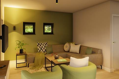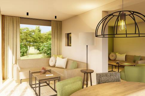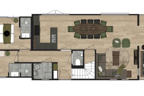 De ruime woonkamer en open keuken lenen zich bij uitstek voor activiteiten met de gehele groep.