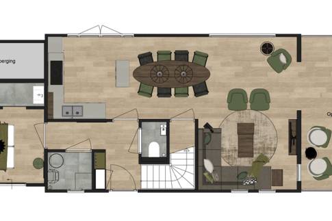Dit is type Witven, de ultieme 8-persoonsvilla. Deze eyecatcher op het park valt op door het opvallende gebruik van houten materialen in de architectuur van de villa.