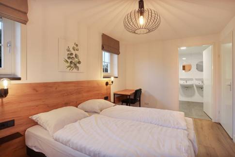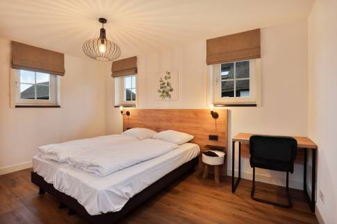 Twee slaapkamers en één badkamer maken de begane grond compleet. Op de verdieping nog een ruime knusse slaapzolder met 2 boxspringbedden.