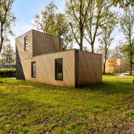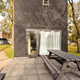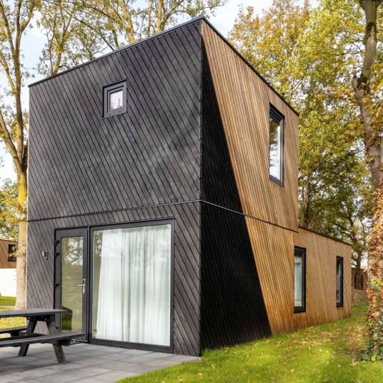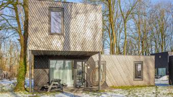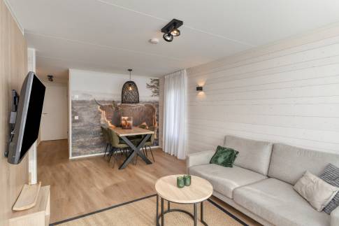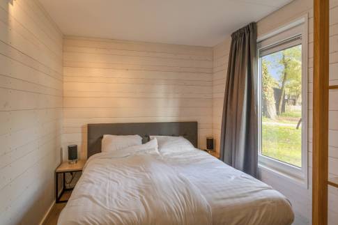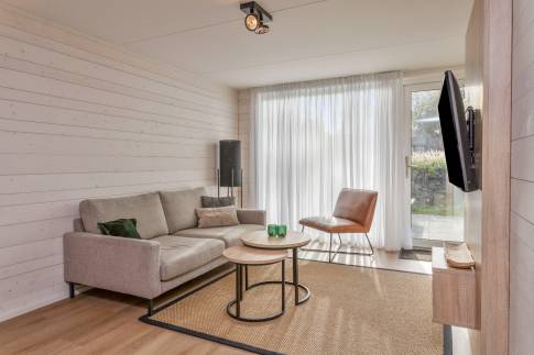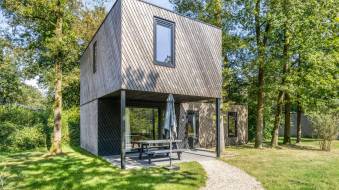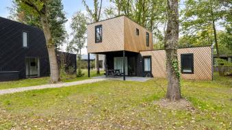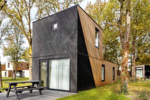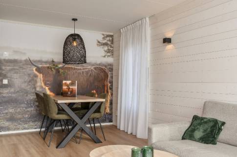 Deze vrijstaande, nieuwe villa (type Forest Villa) op eigen grond met verdieping is geschikt voor 4 personen. De ruime woonkamer heeft grote ramen, vloerverwarming en een zithoek.
