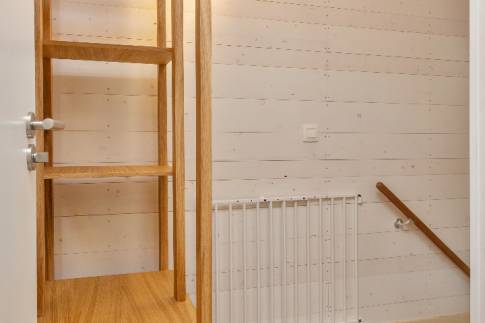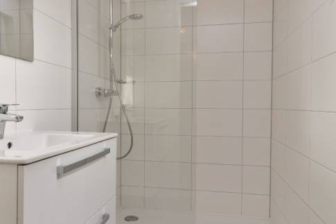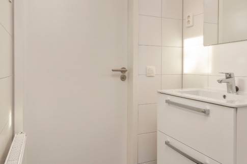 Aangrenzend vind je de open keuken. Deze beschikt onder andere over een vaatwasser, koffiecupapparaat en combimagnetron. Via de keuken bereik je de slaapkamer met 2 eenpersoonsbedden en badkamer ensuite met vloerverwarming en inloopdouche. Beneden is tevens een apart toilet. Boven vind je de tweede slaapkamer met 2 eenpersoonsbedden en geniet je van een tweede badkamer met inloopdouche.