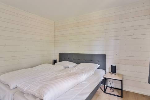 Op de begane grond bevindt zich een slaapkamer met twee eenpersoonsbedden en badkamer en suite met inloopdouche en vloerverwarming. Op de verdieping vind je nog twee ruime slaapkamers en een tweede badkamer met inloopdouche. Dankzij de grote ramen, overkappingen en luxe terrassen loopt binnen moeiteloos over in buiten. In de tuin geniet je van een overdekt terras met comfortabel tuinmeubilair.