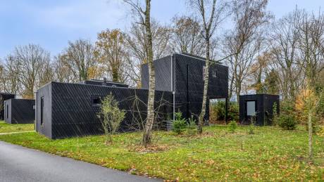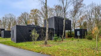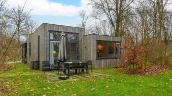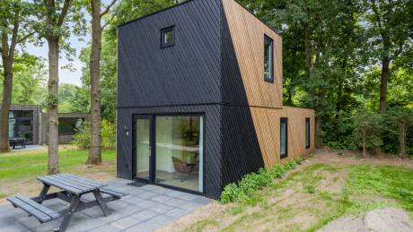 Deze vrijstaande, nieuwe villa (type Forest Villa) op eigen grond met verdieping is geschikt voor 4 personen. De ruime woonkamer heeft grote ramen, vloerverwarming en een zithoek.