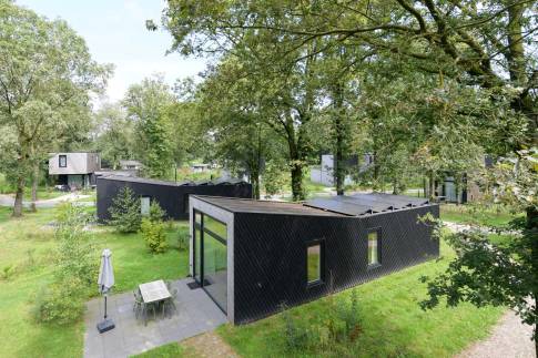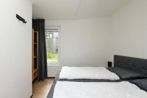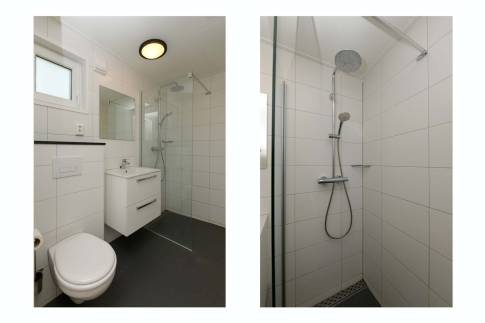 Naast de deur van de tweede slaapkamer loop je zo de badkamer binnen inclusief de inloopregendouche. Tot slot is het maar al te duidelijk dat deze Wellness lodge helemaal klaar is voor de toekomst met 8 zonnepanelen op het dak en een slimme thermostaat, die gekoppeld is aan het reserveringssysteem van Roompot om onnodig energie verbruik te voorkomen.