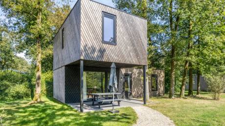 Deze gelijkvloerse, vrijstaande lodge (type Forest cabin) is geschikt voor 4 personen. De lodge is voorzien van vloerverwarming en de woonkamer is voorzien van een televisie met streamfuncties.