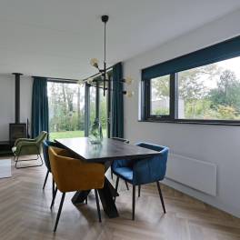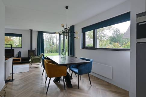 Deze 4-persoons extra luxe recreatiewoning (type 4EL) is vrijstaand en gelegen aan de rand van het park. De woning heeft een zeer moderne uitstrlaing. De lichte woonkamer biedt een comfortabele zit- en eethoek, sfeervolle houtkachel en smart-tv. De open keuken is compleet uitgerust met o.a. inductiekookplaat, combimagnetron, vaatwasser, Quooker, Nespresso en koelkast met vriesvak. Boven bevinden zich twee slaapkamers met boxspringbedden en flatscreen-tv’s. De luxe badkamer op de verdieping heeft een inloopdouche met sunshower, wastafel en toilet; op de begane grond is een separaat toilet. Daarnaast geniet je van extra wellness met een eigen sauna. In ruime de tuin met veel privacy staat er een veranda met loungeset, tuinhaard en Big Green Egg. Het terras heeft verstelbaar meubilair en parasol.