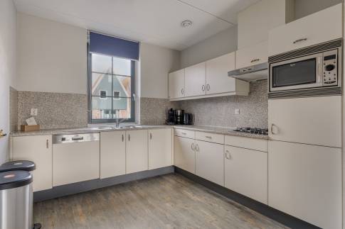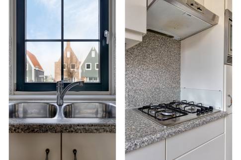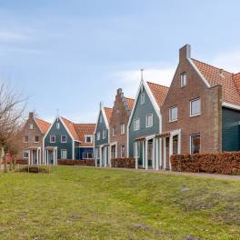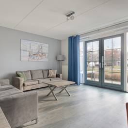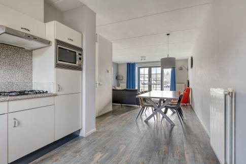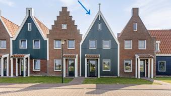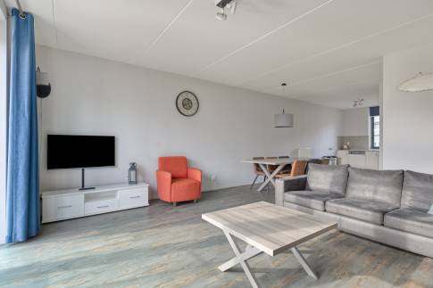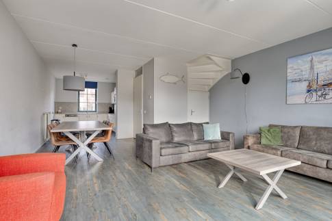 Deze gerestylede, geschakelde bungalow is geschikt voor 7 personen en staat op een perceel van 115 m² eigen grond. De woning beschikt over een lichte woonkamer met eethoek en openslaande tuindeuren naar het gemeubileerde terras. De open keuken is voorzien van diverse inbouwapparatuur en in de hal bevindt zich een apart toilet.