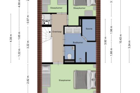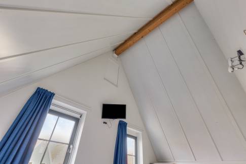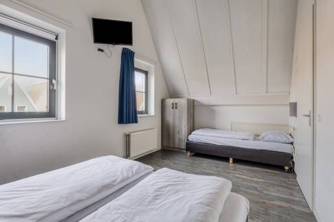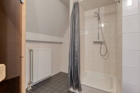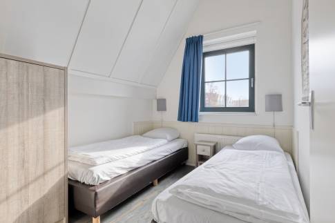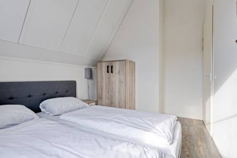 Op de eerste verdieping liggen drie slaapkamers, allen ingericht met comfortabele boxspringbedden. De badkamer is uitgerust met een douche en dubbele wastafel. Daarnaast is er een separaat toilet én een sauna op de eerste verdieping, wat zorgt voor extra comfort en ontspanning.