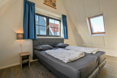 Er zijn twee royale slaapkamers met 5 boxspring bedden. Er is een ruime badkamer op de 1e verdieping met een douche een ligbad en toilet. Beneden is een apart toilet.