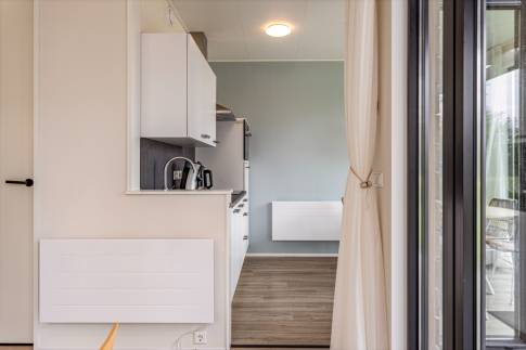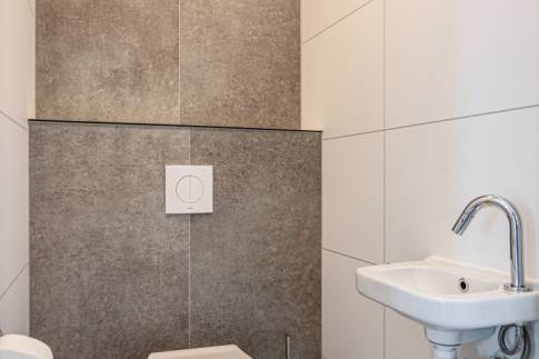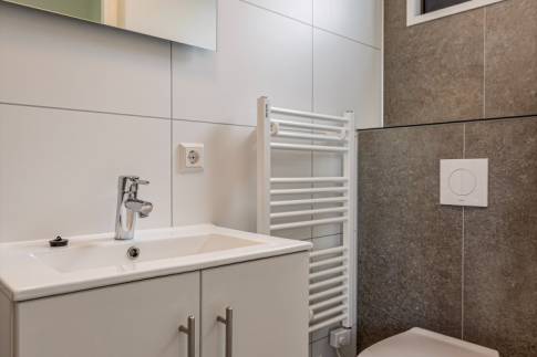 De badkamer is uitgerust met een douche-inrichting, wastafel met meubel en toilet. Daarnaast is er nog een tweede badkamer en een extra toilet. Voor de warmwater voorziening wordt er gebruikt gemaakt van je eigen 300 liter boiler. Het geheel is uiteraard goed geïsoleerd en voorzien van een moderne, frisse inrichting.