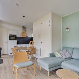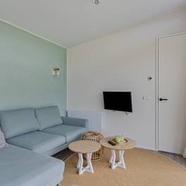 U betreedt de woning via de sfeervolle tuinkamer, die direct in verbinding staat met de open keuken. Deze moderne inbouwkeuken is voorzien van een inductiekookplaat, afzuigkap, koelkast en vaatwasser – alles voor comfortabel verblijf.