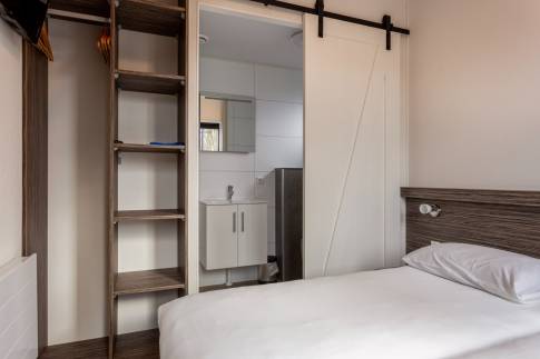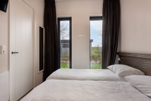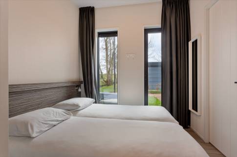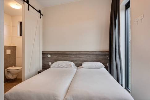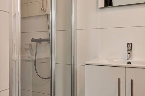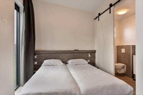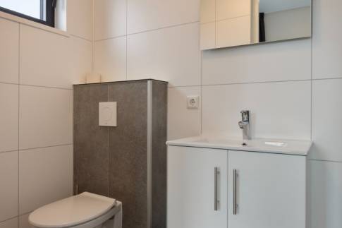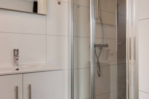 Er zijn 2 slaapkamers met elke een eigen badkamer. De badkamers zijn uitgevoerd met een douche-inrichting, wastafel met meubel en een toilet.