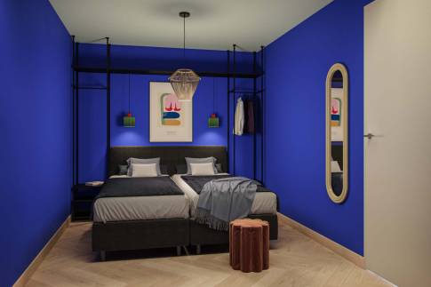 De villa is verdeeld in twee vleugels: één met twee ruime tweepersoonsslaapkamers, elk met een eigen ensuite badkamer, en een andere vleugel met nog een tweepersoonsslaapkamer en een wellnessruimte. Hier vind je pure ontspanning in de Finse sauna, het bubbelbad en de luxe inloopdouche. Beide vleugels zijn voorzien van een separaat toilet voor extra gemak. De buitenzijde van de villa straalt ingetogen luxe uit, met een elegante combinatie van betonlook en gebrand hout. Dit zorgt niet alleen voor een stijlvolle, moderne uitstraling, maar past ook naadloos in het natuurlijke decor van de duinen.