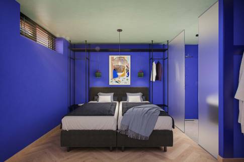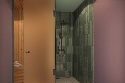 In het souterrain bevinden zich vier luxe tweepersoonsslaapkamers, waarvan twee met een eigen ensuite badkamer. Daarnaast is er een aparte badkamer met een ruime inloopdouche en een Finse sauna voor ultieme ontspanning. De villa is verdeeld over twee woonlagen, die elk een unieke ambiance bieden. Via twee trappen bereik je het woondeel, bestaande uit een royale woonkeuken en een lichte, sfeervolle woonkamer. Dankzij de grote glazen gevels en het indrukwekkende oplopende plafond baadt de ruimte in natuurlijk licht. De moderne keuken is voorzien van hoogwaardige apparatuur én een wijnkoeler.