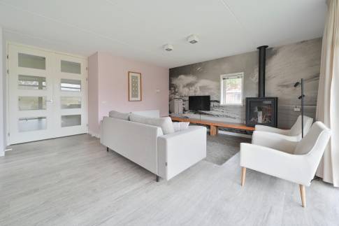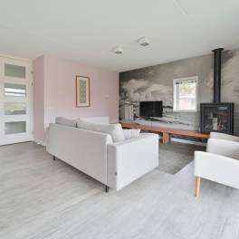 Je betreedt deze royale woning via de ruime woonkamer, waar direct de warme en comfortabele sfeer opvalt.