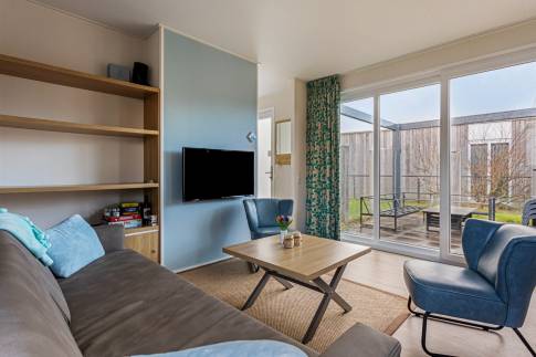 De aangeboden 6-persoons vrijstaande Lodge is voorzien van een eigen centrale verwarming, ligt op eigen grond, met een privé parkeerplaats en een betegeld zonneterras.