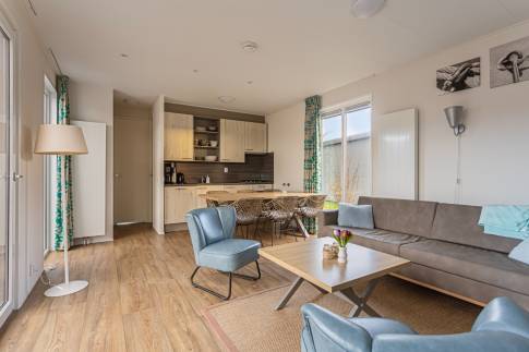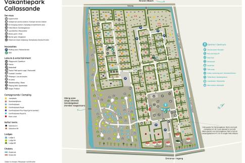 Het vakantiepark heeft allerlei voorzieningen zoals een zwembad, supermarkt, restaurant en sport- en spel faciliteiten.