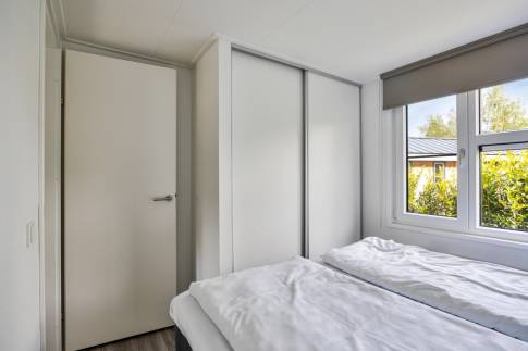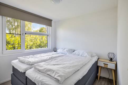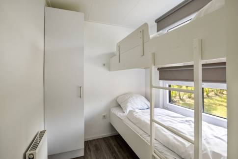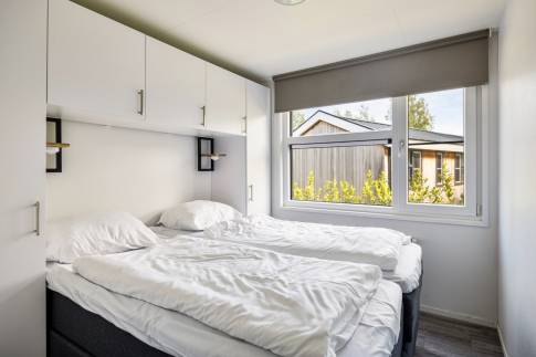 Er zijn drie slaapkamers: de eerste slaapkamer heeft een tweepersoonsbed met ombouw, waar veel kastruimte in zit. De tweede slaapkamer heeft ook een tweepersoonsbed met een ingebouwde kledingkast en de derde slaapkamer heeft een stapelbed, waar kinderen vaak dol op zijn.