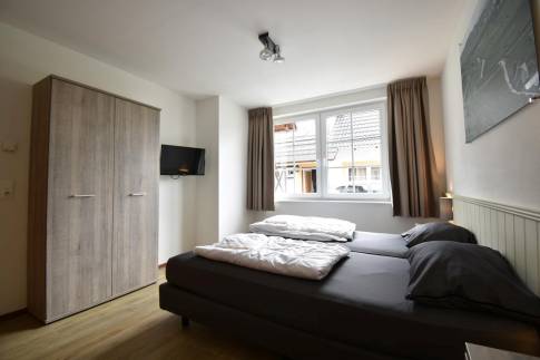 Beneden is de woonkamer met eethoek en een open keuken met vaatwasser. Er is 1 slaapkamer met boxspringbedden en 1 badkamer met een douche. In de berging vind je een wasmachine en -droger en er is een apart toilet in de hal.