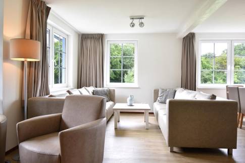 Deze vrijstaande, gerestylede familievilla aan de bosrand is geschikt voor 12 personen.