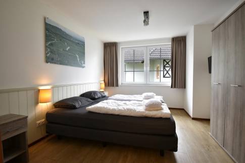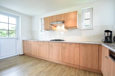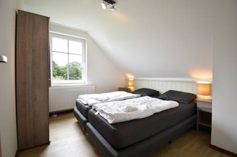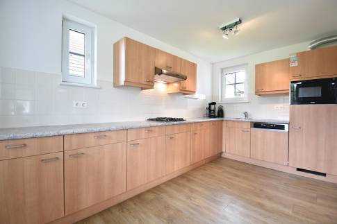Beneden is de woonkamer met eethoek en een open keuken met vaatwasser. Er is 1 slaapkamer met boxspringbedden en 1 badkamer met een douche. In de berging vind je een wasmachine en -droger en er is een apart toilet in de hal.