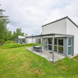 Daarnaast beschikt de bungalow over twee badkamers: één met een ligbad en één met een douche. In de hal bevindt zich een apart toilet. Buiten geniet je van een fijne, onderhoudsvriendelijke tuin met gemeubileerd terras – perfect om te ontspannen.