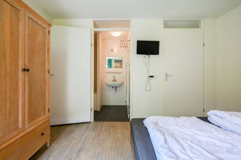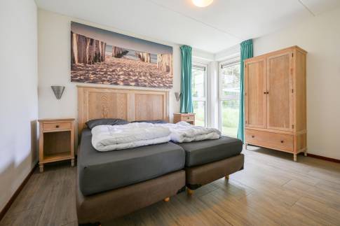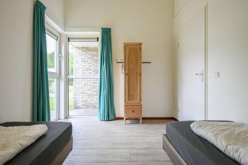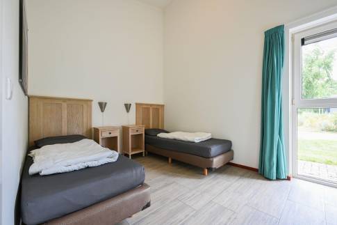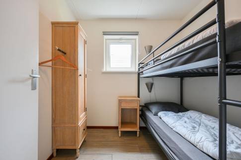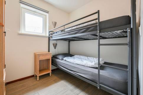 De woning telt drie slaapkamers, waarvan twee zijn ingericht met twee eenpersoonsboxspringbedden en één met een stapelbed. In een van de slaapkamers is tevens een televisie aanwezig, wat extra comfort biedt.