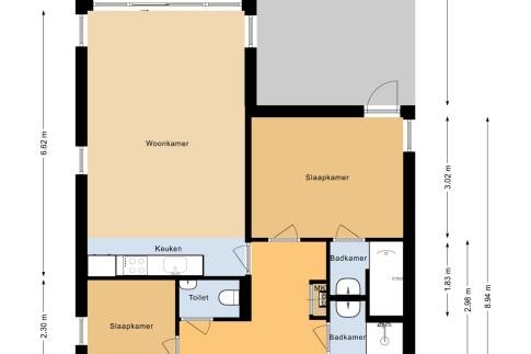 3 slaapkamers en 2 badkamers