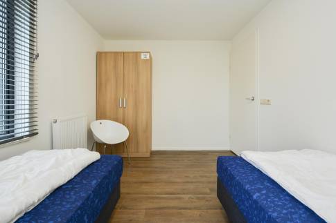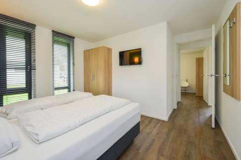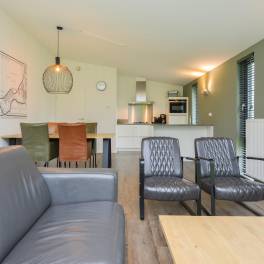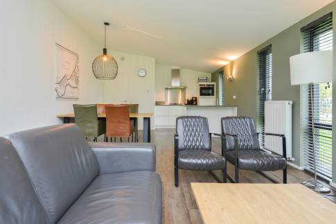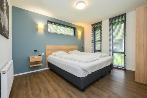 Deze breed toegankelijke woning voor 4 personen (type 4C) heeft een open leefruimte met veel lichtinval door de hoge raampartijen. De woonkamer beschikt over een eigentijdse zit- en eethoek. Via de schuifdeur betreedt u het gemeubileerde terras. De moderne keuken is compleet uitgerust met een 4-pits gaskookplaat, vaatwasser, Nespresso koffiemachine en combimagnetron. Deze woning beschikt over 2 slaapkamers met twee 1-persoons boxspring bedden. De badkamer heeft een ligbad, douche en wastafel. Het toilet is separaat.