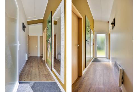 Deze gelijkvloerse 6-persoons woning van het type 6C2 is centraal op het park gelegen, vlakbij de centrale faciliteiten. De lichte woonkamer heeft een ruime zit- en eethoek met sfeervolle open haard. De open keuken is o.a. voorzien van een vaatwasser, elektrische kookplaat, koelkast en een combimagnetron. Via de tuindeur in de woonkamer heeft u toegang tot het deels overdekte terras met terrasmeubilair. Er zijn drie slaapkamers, allen voorzien van twee 1-persoons boxsprings. De badkamer heeft in 2022 een kleine update gehad en beschikt over een ligbad, douchecabine en wastafel. Het toilet is separaat. Deze bungalow is voorzien van een inpandige berging met eigenarenkast.