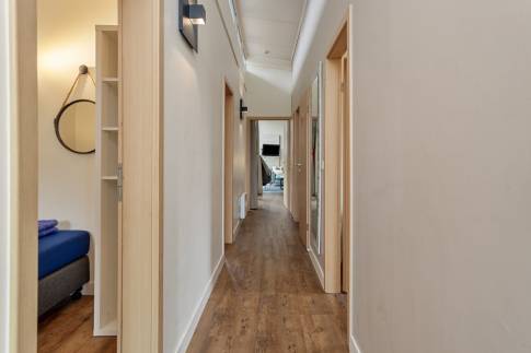 De geschakelde bungalow, type 6C1, beschikt over een moderne zit- en eethoek met sfeervolle open haard. De open keuken beschikt o.a. over een vaatwasser, koelkast met vriesvak en een combimagnetron. Er zijn drie slaapkamers, allen voorzien van twee 1-persoons boxsprings. De hoofdslaapkamer beschikt daarnaast over een softtopper. De badkamer is voorzien van een ligbad, aparte douche, wastafel en het toilet is separaat. Het deels overdekte terras is voorzien van terrasmeubilair en vanaf hier heeft u een mooi uitzicht over het meer. De woning is centraal gelegen aan een speelveld en ten opzichte van de centrale voorzieningen.