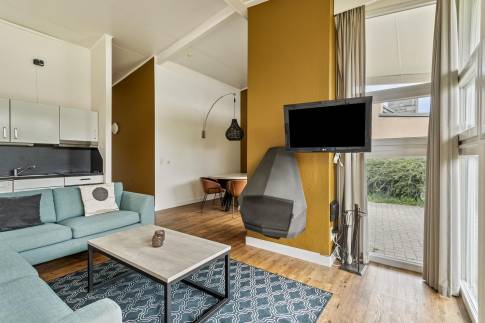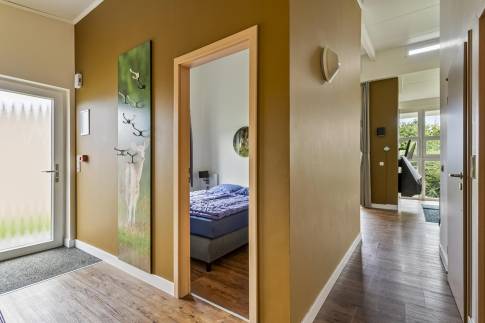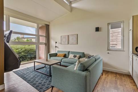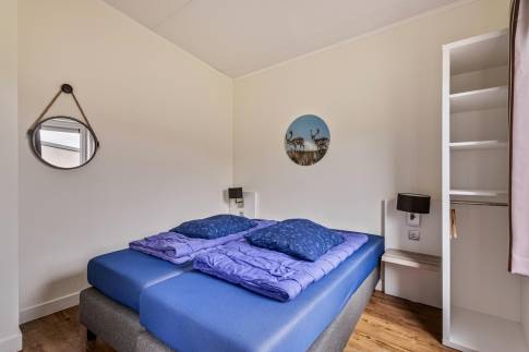 Deze ruime vrijstaande 6-persoons woning (type 6CT) is centraal op het park gelegen nabij de centrale faciliteiten. De woning beschikt over een zit- en eethoek met een sfeervolle open haard. Via de tuindeur heeft u vanuit de woonkamer toegang tot het deels overdekte terras. De open keuken is voorzien van een combimagnetron, vaatwasser en Nespresso koffiemachine. De woning heeft in totaal drie slaapkamers, waarvan twee op de begane grond en één op de verdieping, welke allen zijn voorzien van twee 1-persoons boxsprings. De badkamer op de begane grond beschikt over een douche, wastafel en een douche. Het toilet is separaat. Er is daarnaast ook nog een inpandige berging aanwezig.