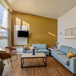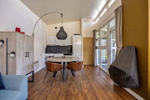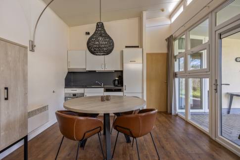 Deze 6-persoonswoning (type 6C1) is centraal gelegen nabij de centrale faciliteiten. De woning beschikt over een moderne zit- en eethoek met sfeervolle open haard. De open keuken is voorzien van een vaatwasser, koelkast met vriesvak, Senseo koffiezetapparaat en een combimagnetron. Er zijn drie slaapkamers, allen voorzien van twee 1-persoons boxsprings. De badkamer is voorzien van een ligbad, douchecabine en wastafel. Het toilet is separaat. Het deels overdekte terras is voorzien van terrasmeubilair. Het terras heeft een beschutte ligging.