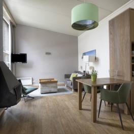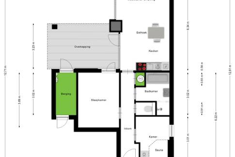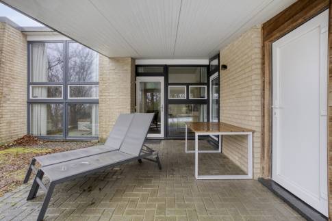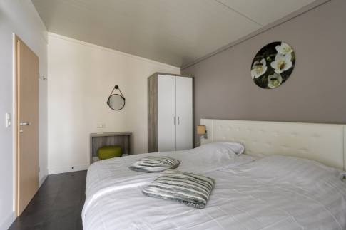 Via de tuindeur in de woonkamer heb je direct toegang tot het deels overdekte terras met ligstoelen en verstelbaar terrasmeubilair. Hier kun je in alle rust kunt genieten. De woning beschikt over één slaapkamer met twee comfortabele eenpersoons boxspringbedden. De badkamer is uitgerust met een lig-/bubbelbad, een douchecabine en een wastafelmeubel. Daarnaast beschikt de woning over een 2-pers. privé sauna, ideaal om volledig tot rust te komen. Tot slot is er wasmachine en -droger en een praktische berging aanwezig.
