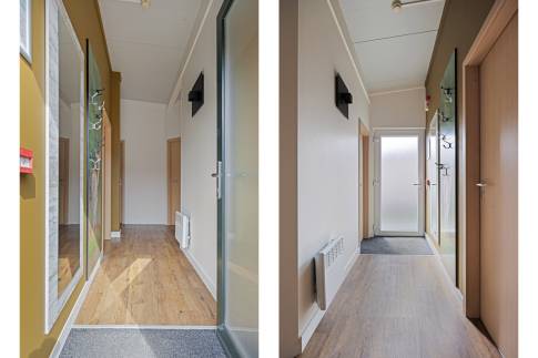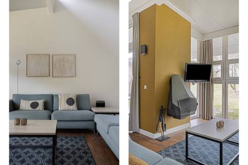 Deze gelijkvloerse vakantiewoning voor 6 personen, type 6CT, bevindt zich op een rustige hoeklocatie met een parkeerplaats. De woning is breedtoegankelijk* waardoor geschikt voor mensen met een lichamelijke beperking. De lichte en ruime woonkamer is ingericht met een moderne zit- en eethoek, inclusief een gezellige open haard die zorgt voor extra sfeer. De open keuken is van alle gemakken voorzien met diverse inbouwapparatuur, zoals een vaatwasser, een combimagnetron en een koelkast met vriesvak. Vanuit de woonkamer heeft u via de tuindeur toegang tot het deels overdekte terras, compleet met terrasmeubilair. De woning beschikt over drie slaapkamers, allemaal uitgerust met twee 1-persoons boxsprings. De badkamer is uitgerust met een vlakke inloopdouche en een ligbad voor extra comfort.