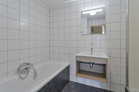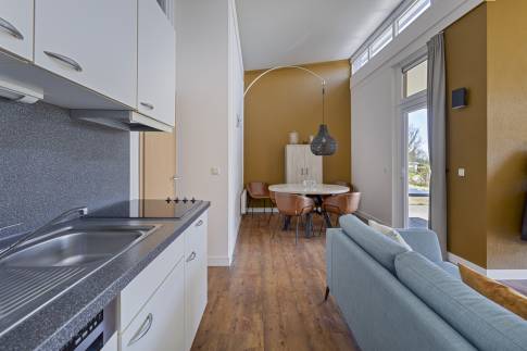 De open keuken is van alle gemakken voorzien en beschikt over diverse inbouwapparatuur, waaronder een vaatwasser, combimagnetron en een koelkast met vriesvak. De badkamer biedt zowel een douche als een ligbad, en is voorzien van een wastafel. Het toilet is separaat. Alle drie de slaapkamers liggen op de begane grond en zijn elk ingericht met twee comfortabele eenpersoons boxspringbedden.