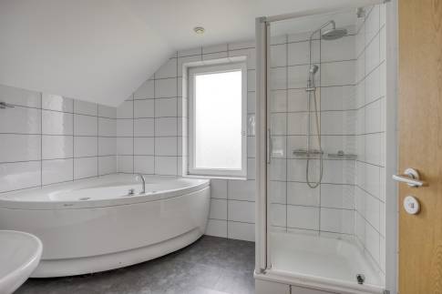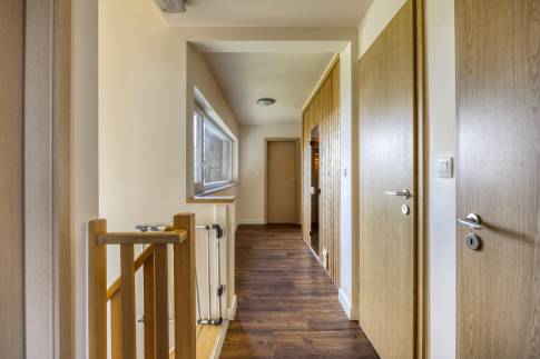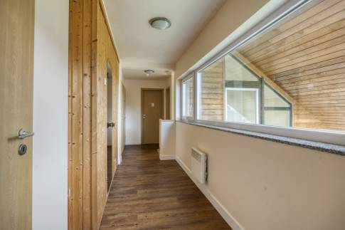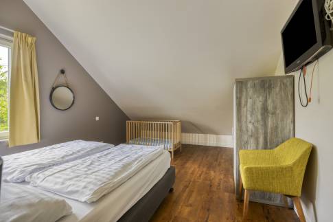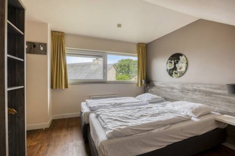 Op de eerste verdieping zijn alle kamers bereikbaar vanaf de vide. Er zijn hier nog eens twee grote slaapkamers, beide voorzien van twee 1-persoons boxsprings. De tweede badkamer is voorzien van een bubbelbad, douchecabine en dubbele wastafel. Er is daarnaast ook nog een 2-persoons sauna aanwezig.