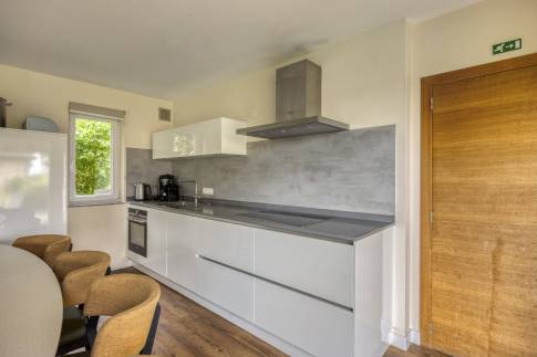 De open keuken is o.a. voorzien van een vaatwasser, Nespresso koffiemachine, koelkast met vriesvak en een combimagnetron.