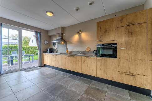 De open keuken is modern ingericht met geïntegreerde inbouwapparatuur, veel kastruimte en een royale eethoek – ideaal voor lange, gezellige maaltijden.