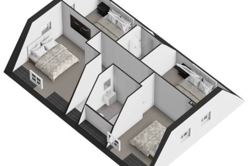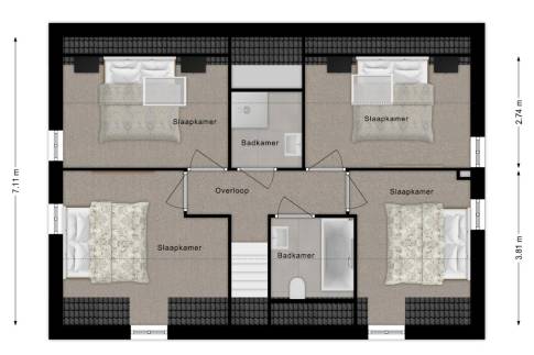 De overloop biedt toegang tot vier ruime slaapkamers, allen voorzien van daglicht via dakkapellen of dakramen.