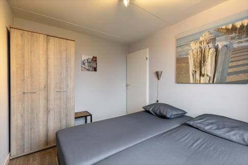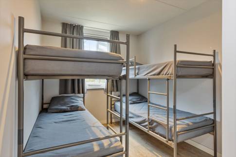 Op de begane grond vind je 3 slaapkamers. Twee slaapkamers zijn voorzien van elk twee eenpersoonsbedden. Op de derde slaapkamer zijn 2 stapelbedden aanwezig, leuk voor de kinderen! Er zijn 2 badkamers aanwezig. Een voorzien van een bad en een van een douche met toilet. Verder vind je op de begane grond een aparte toilet, meterkast en een berging.