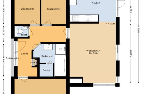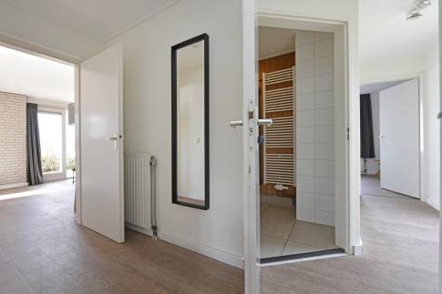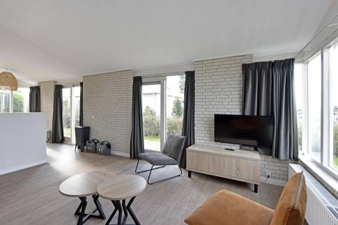 Bij binnenkomst bereik je via de entree de badkamer met traditionele sauna en de drie slaapkamers, bestaande uit twee eenpersoonskamers en één tweepersoons slaapkamer. De sfeervolle woonkamer met open keuken vormt het hart van de woning. De open haard zorgt voor behaaglijke winteravonden, terwijl de openslaande deuren je in één stap naar de zonnige tuin brengen.