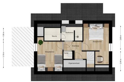 – 3 slaapkamers, 2 badkamers en sauna