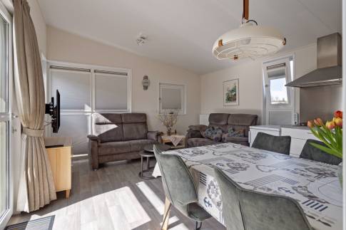 De lodge ligt op een ruim perceel met veel groen en privacy, beschikt over twee slaapkamers met elk een eigen badkamer en heeft een zonnige tuin met royaal terras. De woning is instapklaar én uitstekend onderhouden — precies wat je zoekt voor je eigen plek aan de Zeeuwse kust.