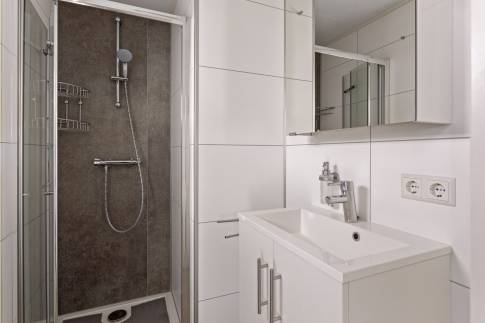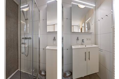 De lodge heeft twee nette, moderne badkamers en suite, beide uitgevoerd in een rustige, tijdloze stijl. Op de foto’s zie je dat beide badkamers zijn uitgerust met een douchecabine, wastafelmeubel en spiegelkast met verlichting. Daarnaast is er een separaat toilet in de hal.