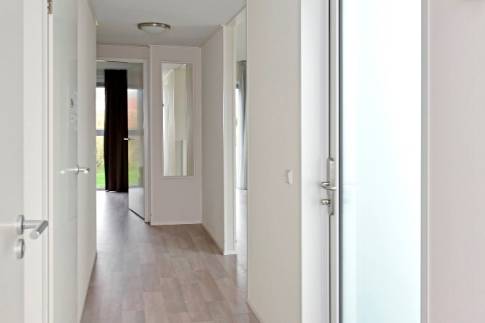 Via de entree kom je in een lange hal die toegang biedt aan alle ruimtes in het object. Aan de rechterzijde van de woning vinden we de sfeervolle woonkamer en de open keuken. De ruime keuken heeft voldoende opbergmogelijkheden en beschikt over alle benodigde apparatuur. Wanneer we terug de hal inlopen komen we bij de twee slaapkamers met beide een badkamer en suite. Deze zijn uitgerust met een grote inloopdouche, een wastafel en luxe handdoekradiator. Tevens vinden we hier een apart toilet. De meterkast en witgoedaansluiting vinden we in de ruime inpandige berging, welke zowel van binnen als van buiten uit te bereiken is.