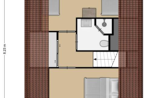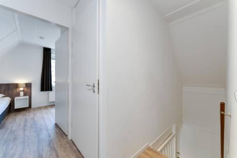 Via de trapopgang bereik je de overloop op de eerste verdieping, die toegang biedt tot twee ruime en sfeervolle slaapkamers én een nette badkamer. De slaapkamers zijn aangenaam licht en de schuine wanden zorgen voor een gezellige, knusse sfeer. De badkamer is functioneel en verzorgd ingericht met een douche, een hangend toilet, een wastafel en een praktische handdoekradiator. Alles is aanwezig om ook boven te genieten van comfort en gemak.