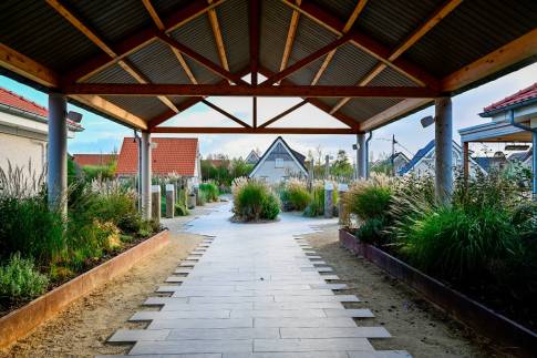 De zonnige tuin heeft een ideale zuid/zuidoostelijke oriëntatie. Aan de woning grenst een ruim terras waar je uitstekend borrelen en/of loungen. Het eerste terras aan de woning is aan de voorzijde gelegen. Door de houten zichtpalen heb je hier veel privacy. Ook op het tweede terras is het heerlijk vertoeven. Door de zichtpalen is dit een knus hoekje geworden. Parkeergelegenheid is voorzien op eigen terrein.