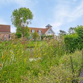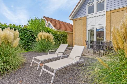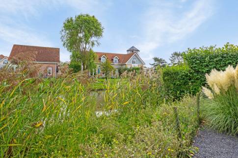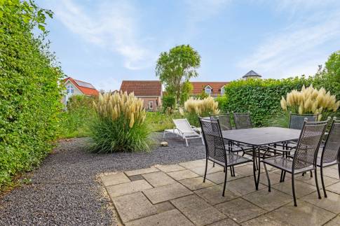 De tuin is heerlijk gelegen aan het water. Door het vele grind is er weinig onderhoud nodig aan de tuin. Zo kun je, wanneer je op vakantie gaat naar de woning, ook echt genieten en vakantie vieren.